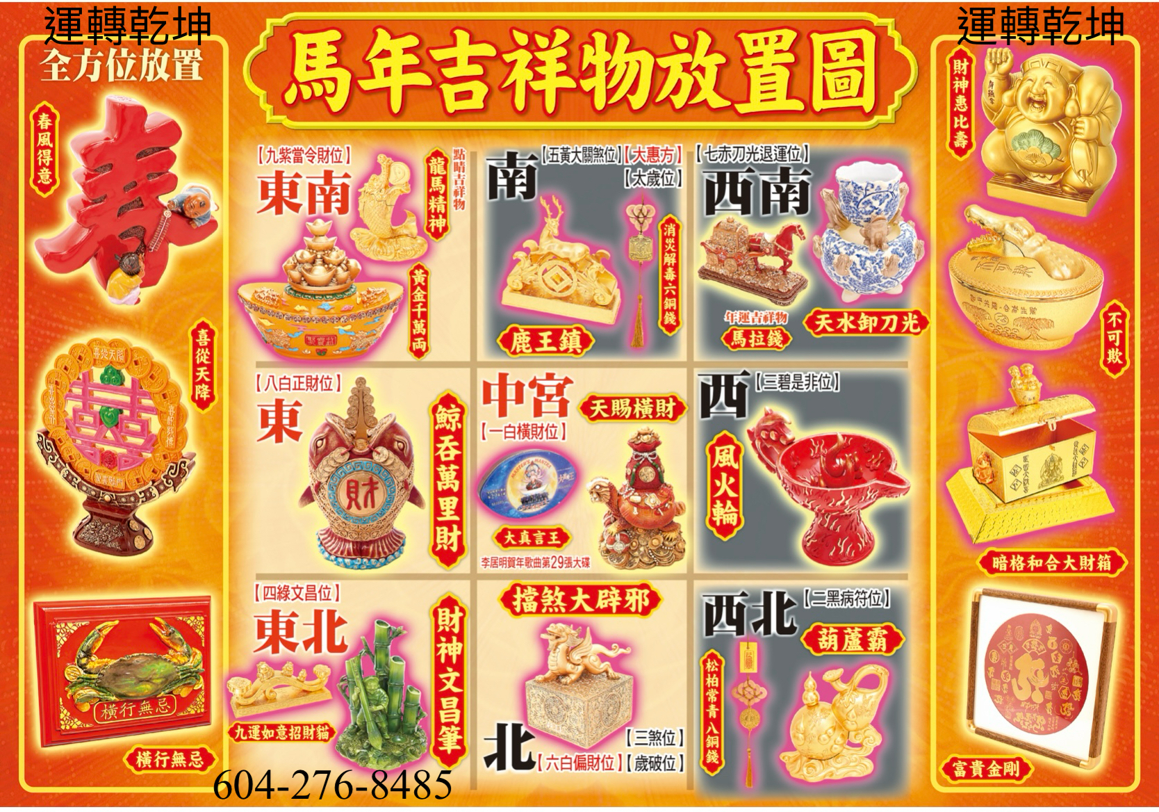 西北 :指客廳的西北、睡房的西北、女傭房間的西北,大門為西北,一定要掛好八銅錢!